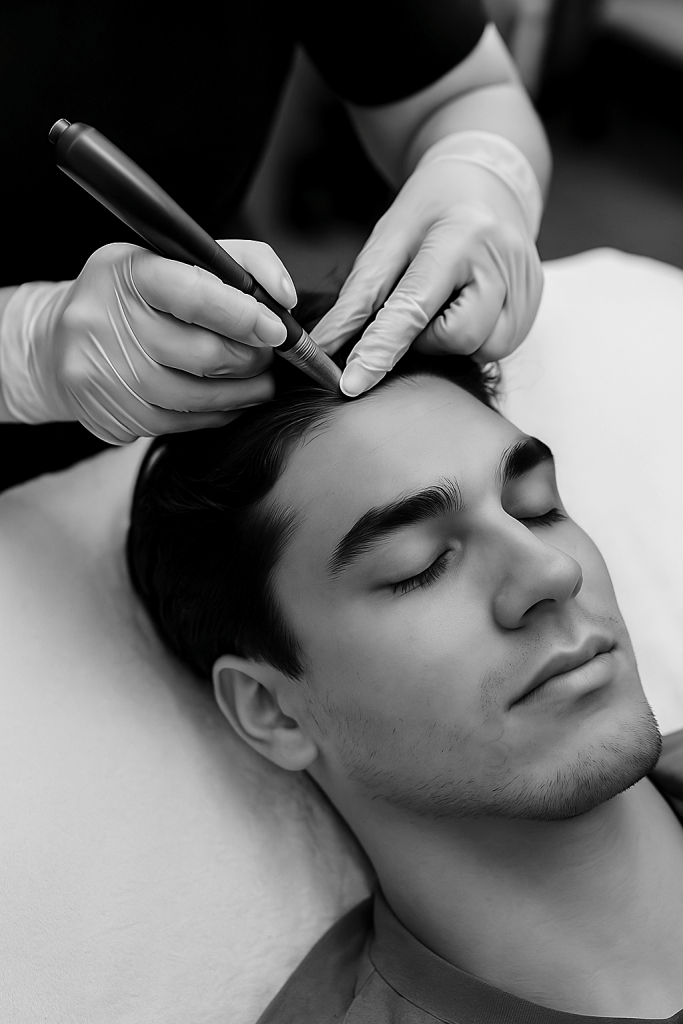 There’s zero downtime for most procedures. Mild redness, pinpoint bleeding, or scalp sensitivity may occur but resolves within 24–48 hours.